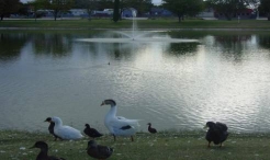 Lobo Lake is a man-made lake that one can view from two bridges. The lake has a fountain and is home to domestic ducks and geese that are fed daily by the townspeople, as well as hundreds of Canadian Geese that have wintered here in recent years. Also, fishing is allowed (all state rules apply), but no swimming.