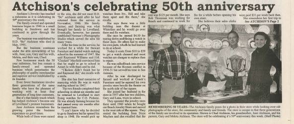 Newspaper clipping for Atchison's 50th Anniversary in 1998